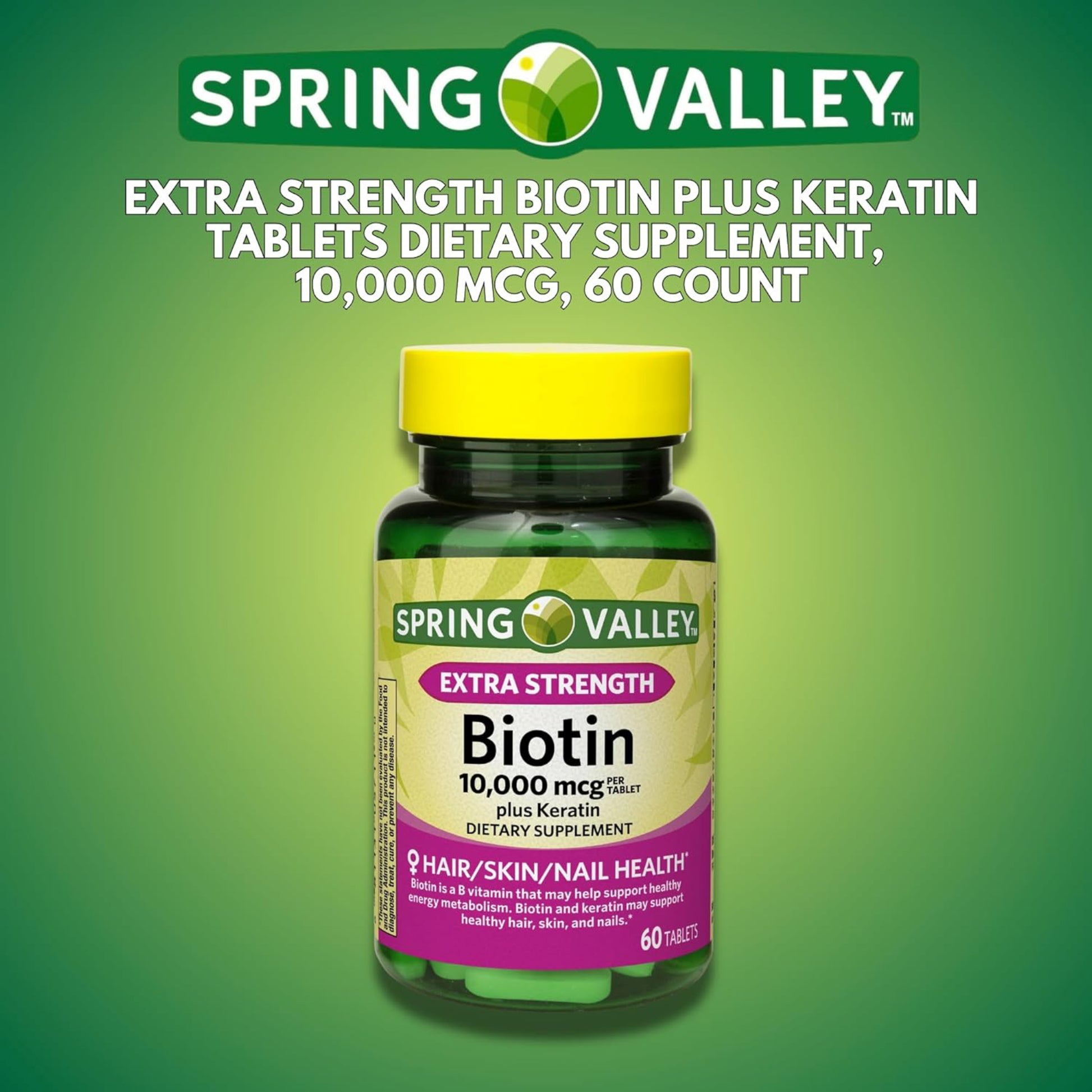 Extra Strength Biotin plus Keratin Tablets, 10,000 mcg, 60 Count is produced under strict quality guidelines and backed by a quality guarantee. The brand recognizes that living a healthy, balanced lifestyle is the key to being your best self. With an affordable range of products inspired by nature, it supports both individual and family well-being.