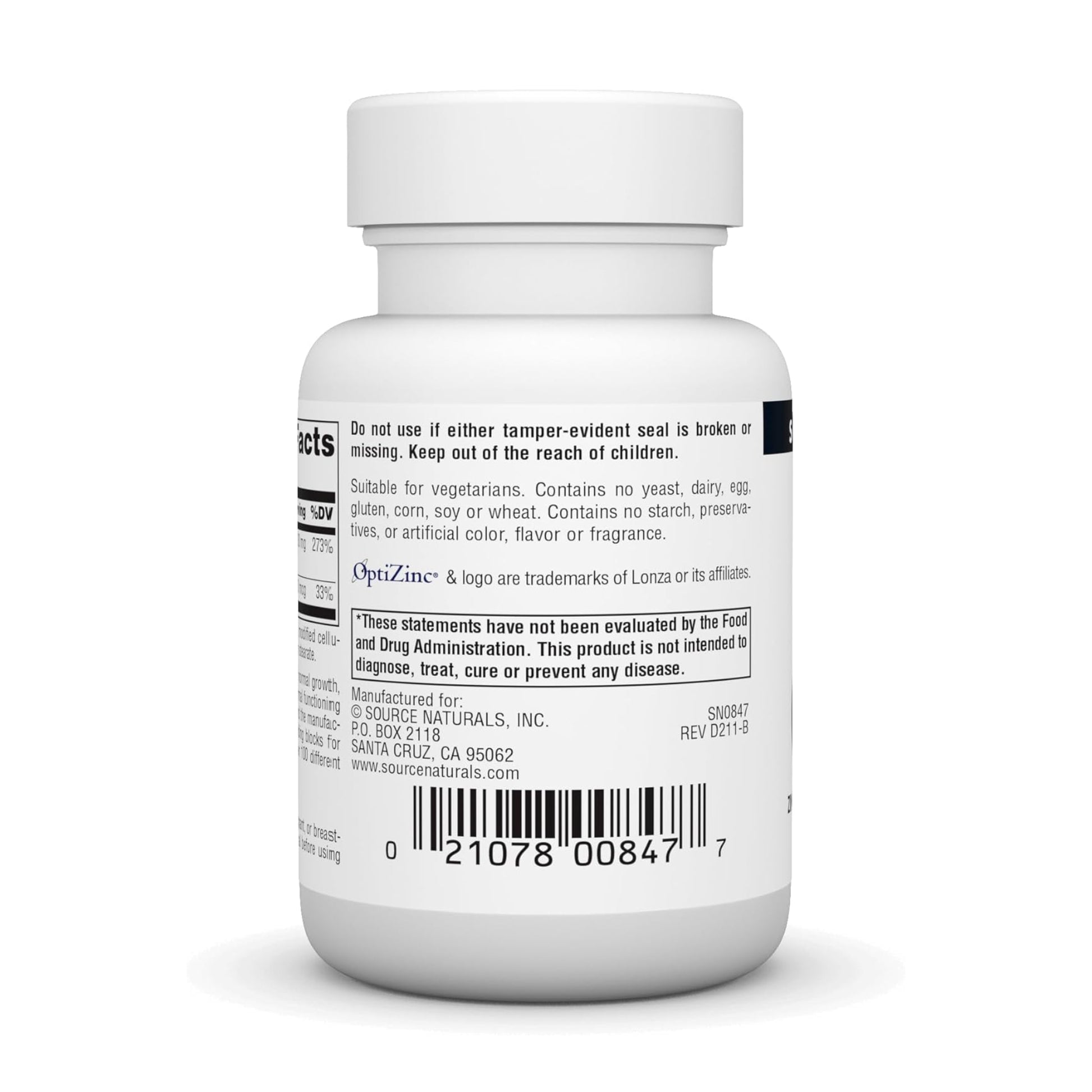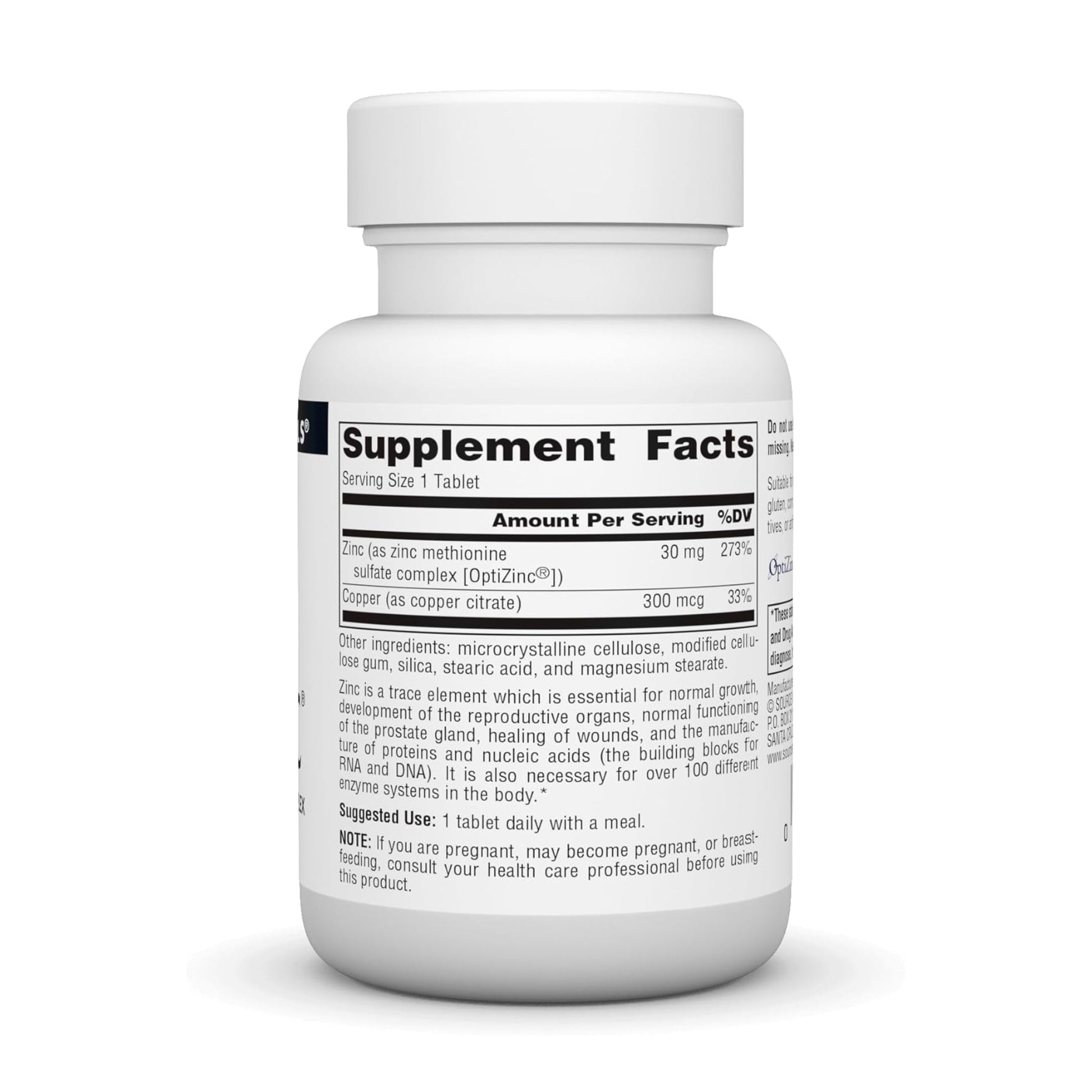 Source Naturals OptiZinc has a highly absorbable form of zinc known as zinc monomethionine—a patented blend of zinc and the amino acid methionine designed for better bioavailability and effectiveness. Each tablet provides 30 mg of zinc and 300 mcg of copper to maintain balance, support immune function, skin health, and overall wellness.