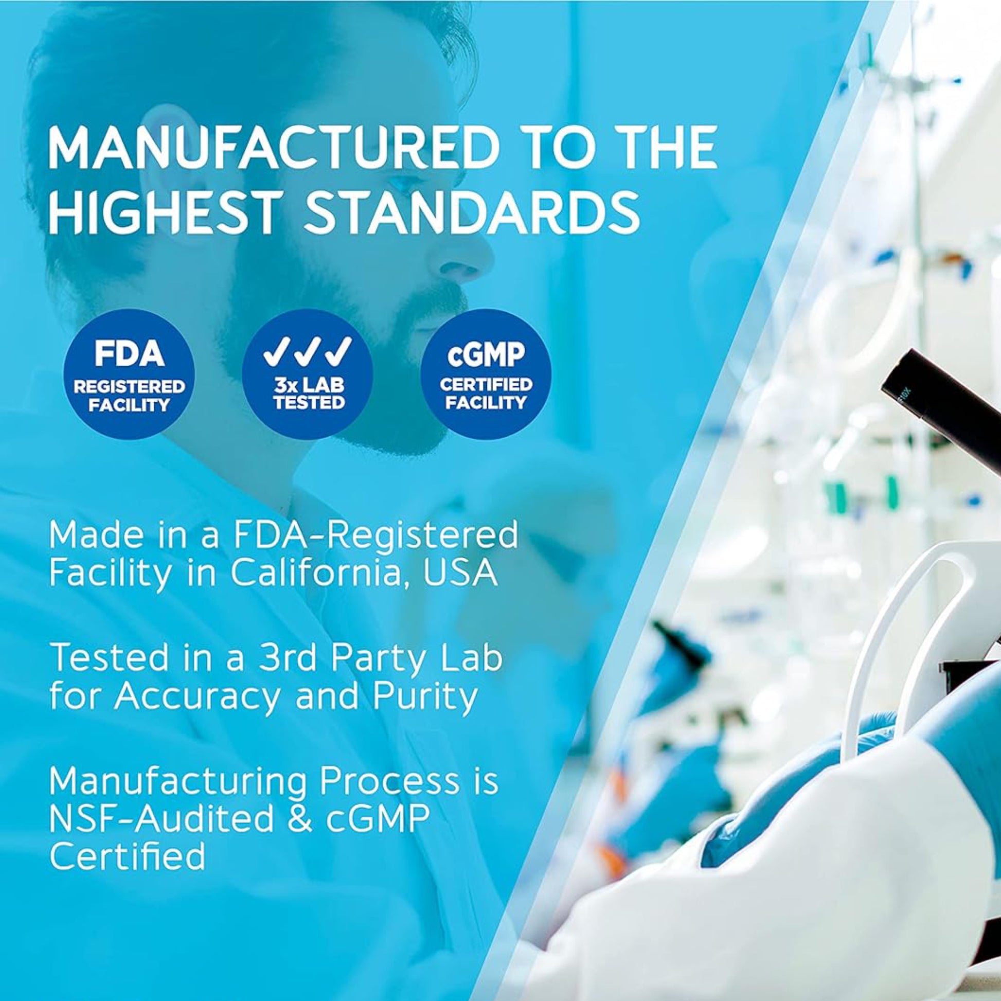 Made in a cGMP facility and 3rd party tested. Every capsule is vegan, non-GMO, gluten-free, and contains no fillers or preservatives.*